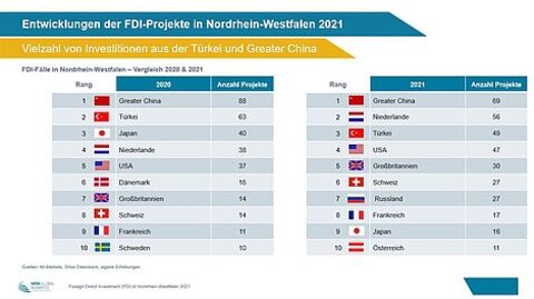 Minister of Economics and Innovation Prof. Dr. Andreas Pinkwart: "This excellent result in foreign direct investment once again demonstrates the high standing of our business location on the international markets. North Rhine-Westphalia has come through the crisis years well. In the future, we will continue to focus on our key topics of energy transition, climate protection, digitalization and the transformation of the economy, which offer international companies new opportunities to participate in the transformation of our region."