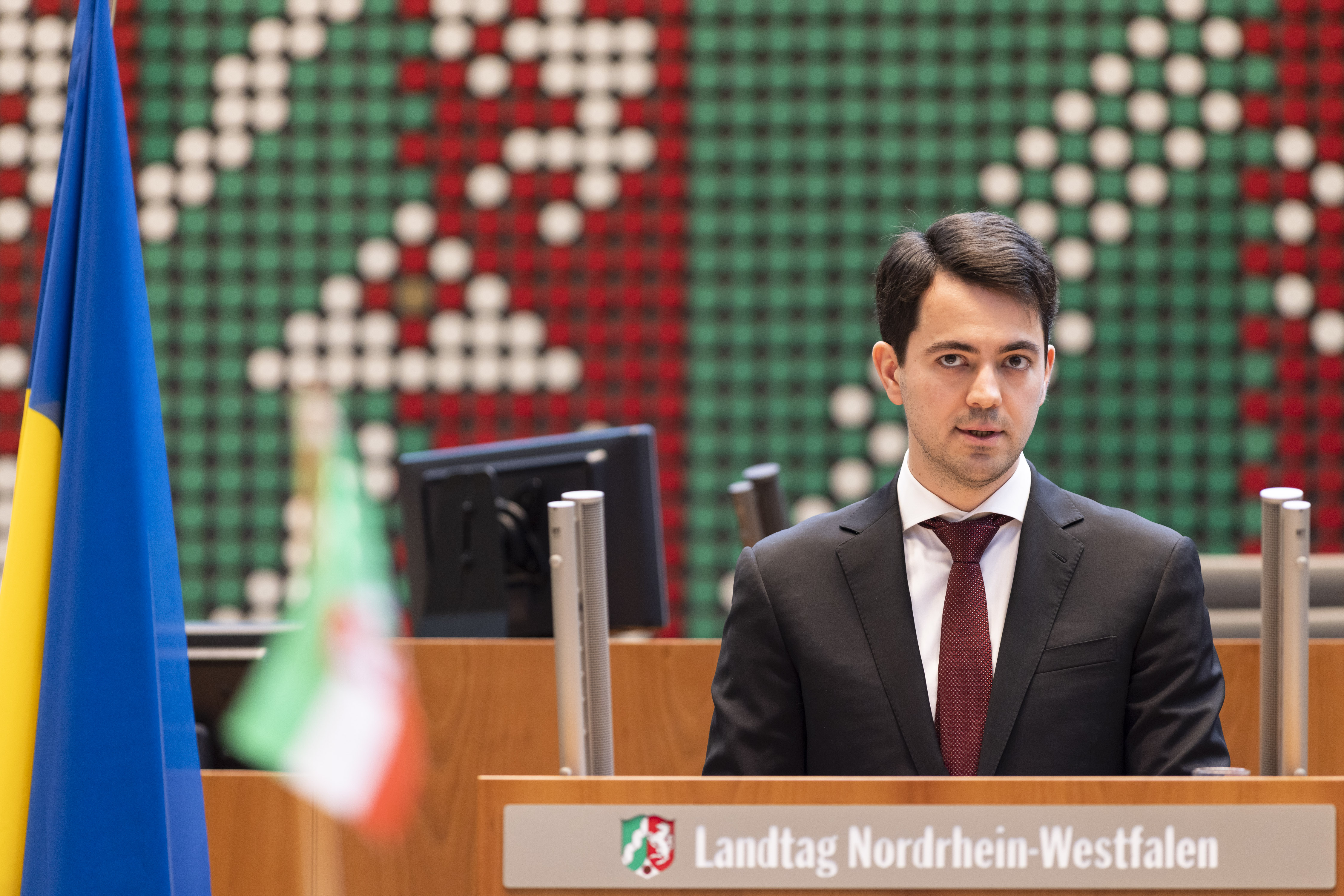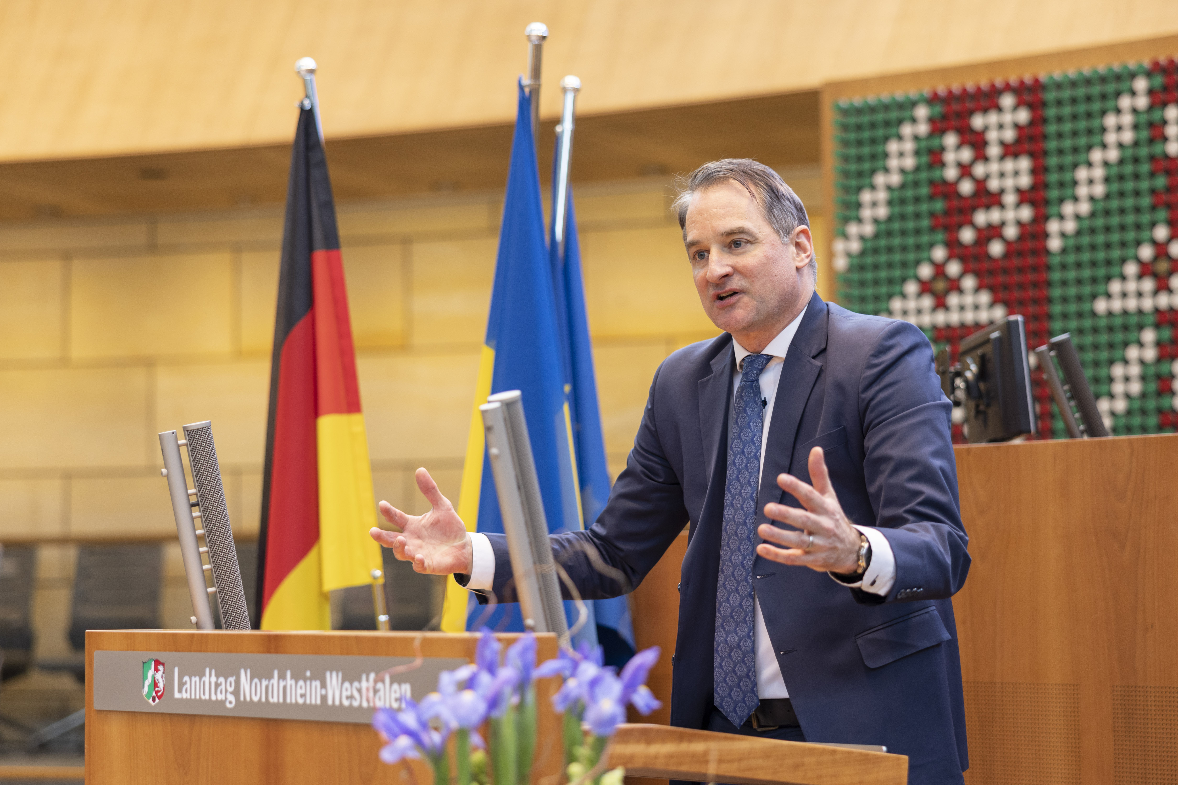 Bildunterschrift: Felix Neugart, Geschäftsführer NRW.Global Business GmbH bei der NRW-Wirtschaftskonferenz „Wiederaufbau der Ukraine“ am 23.03.2023 im Düsseldorfer Landtag.