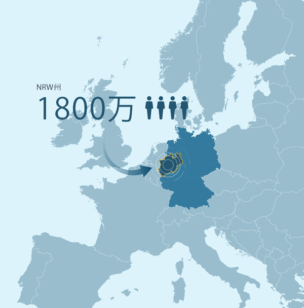 NRW州は、最も人口の多い連邦州であるだけでなく、ヨーロッパの中心、つまり「ヨーロッパの心臓部」の経済の中心地であり、国際ハブでもあります。この地位は、ヨーロッパ大陸の中心に位置し、人口密度が高いことに起因しています。そして卓越した経済パフォーマンス。